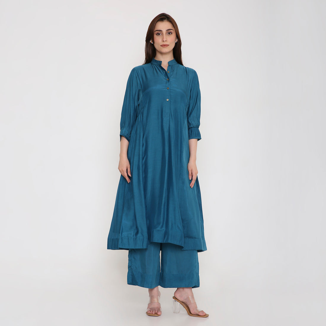 Crafted in flowy Modal Silk, the Girivar co-ord set is designed with subtle gathers on...