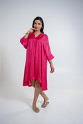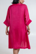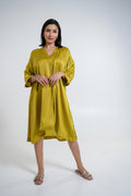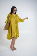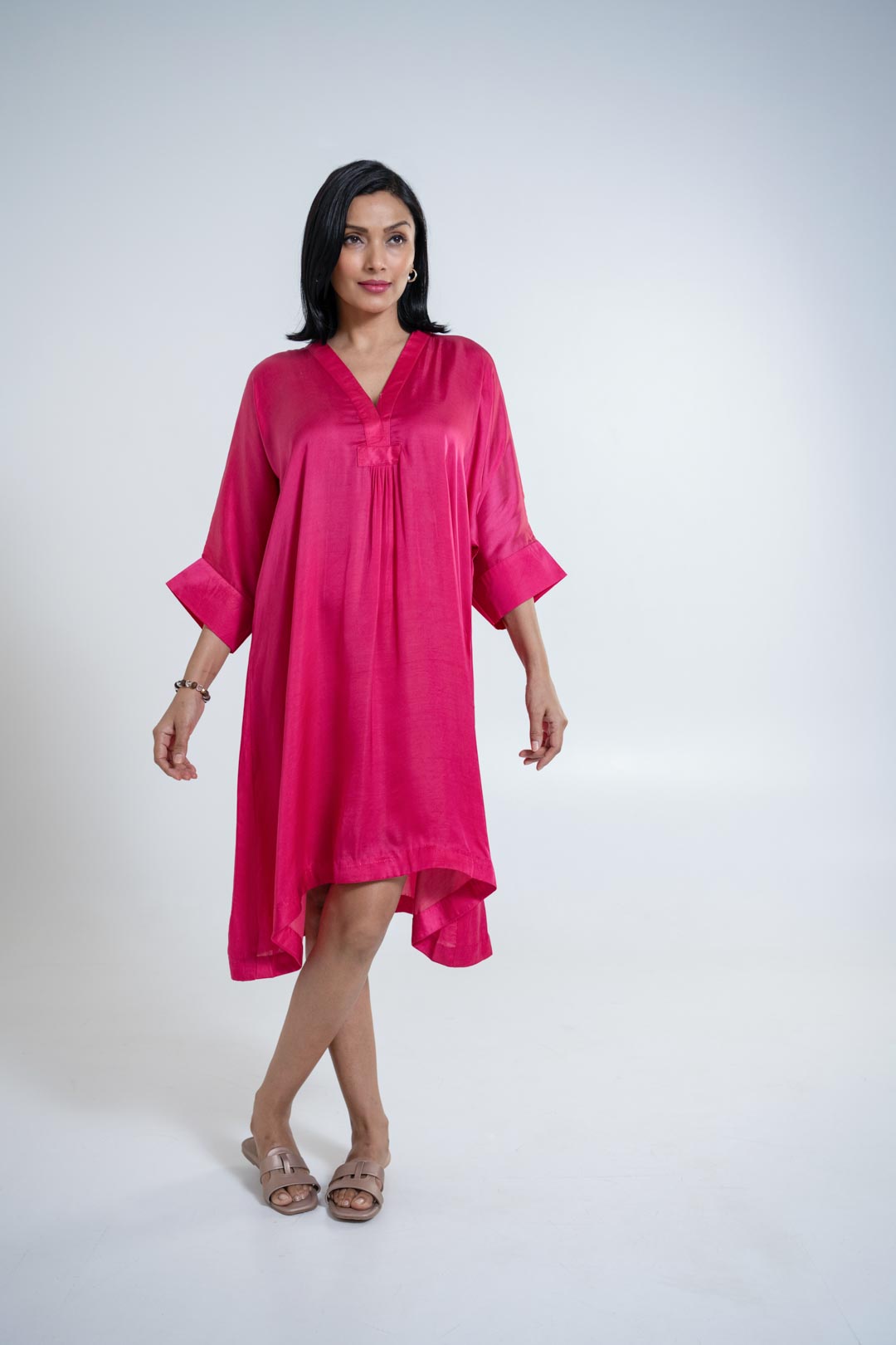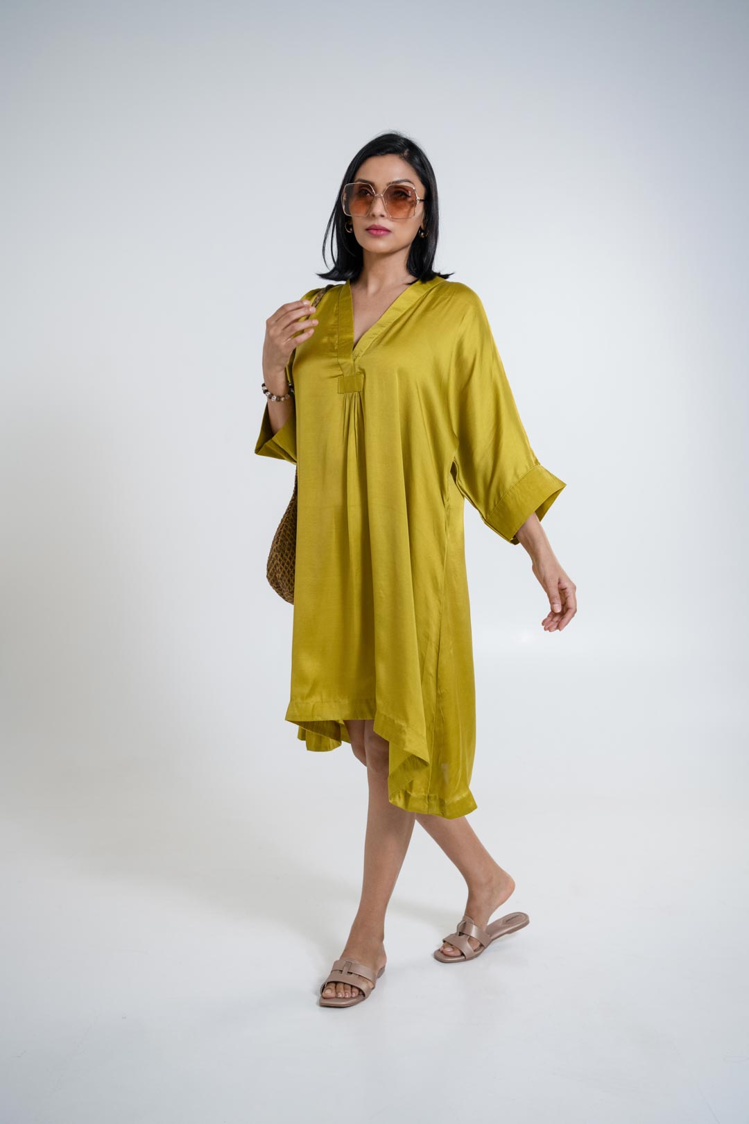 The Ella dress, crafted in breathable satin, features a relaxed fit and V-neckline.