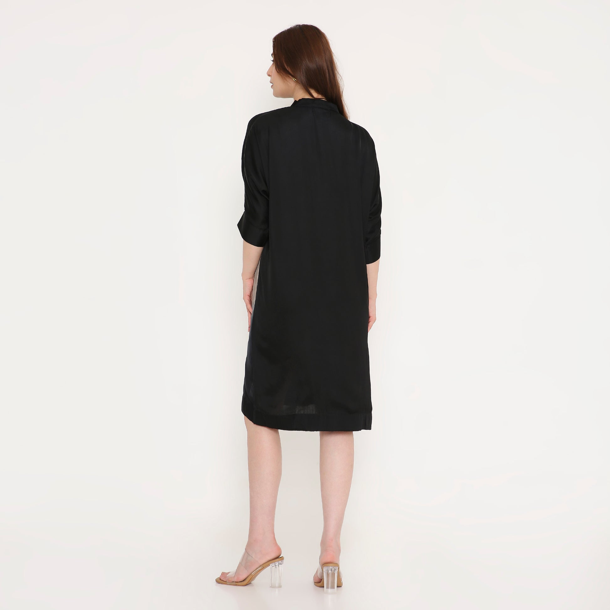 The Ella shaded dress, crafted in breathable satin, features a relaxed fit and V-neckline.