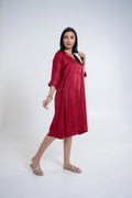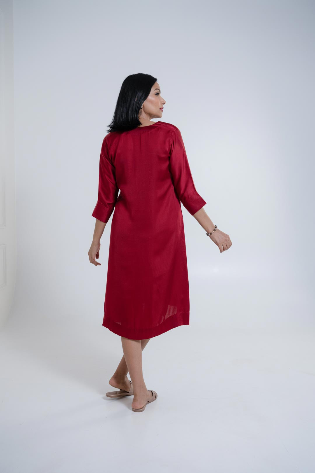 The Lavanya dress in satin features a contrast collar and delicate mokiesh handwork.