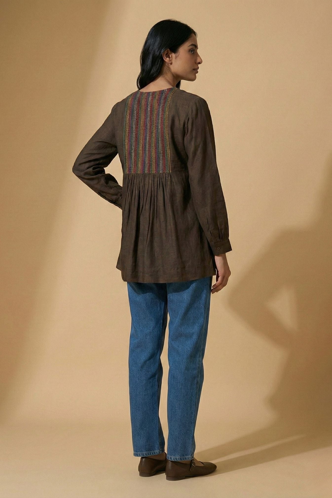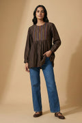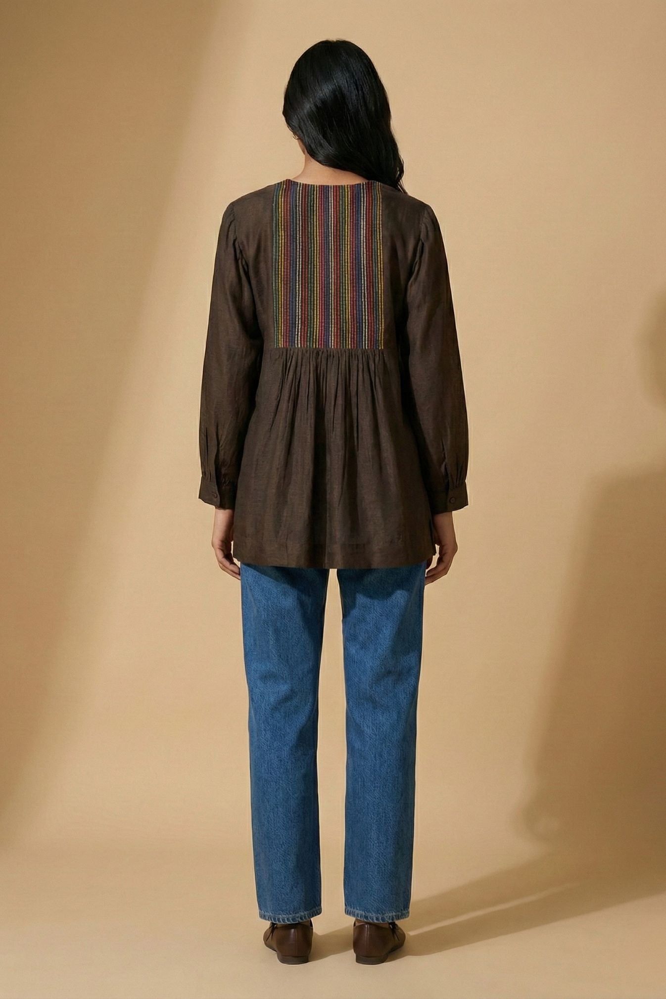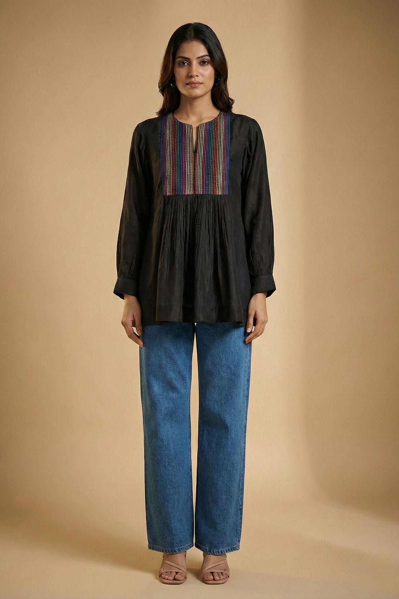 The Myra Top is crafted in soft Modal Silk. Subtle anchor thread detailing highlights the front yoke and back, while gentle gathers add movement and comfort.