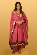 The Nargis Co-ord Set is a 3-piece set in modal silk featuring a kurta with Lampi patches highlighted with mokiesh work and subtle gathers below. The kurta carries dark shaded patch along with lampi for the border. The dupatta is adorned with lampi patches and mokiesh floral work, finished with lace accents.