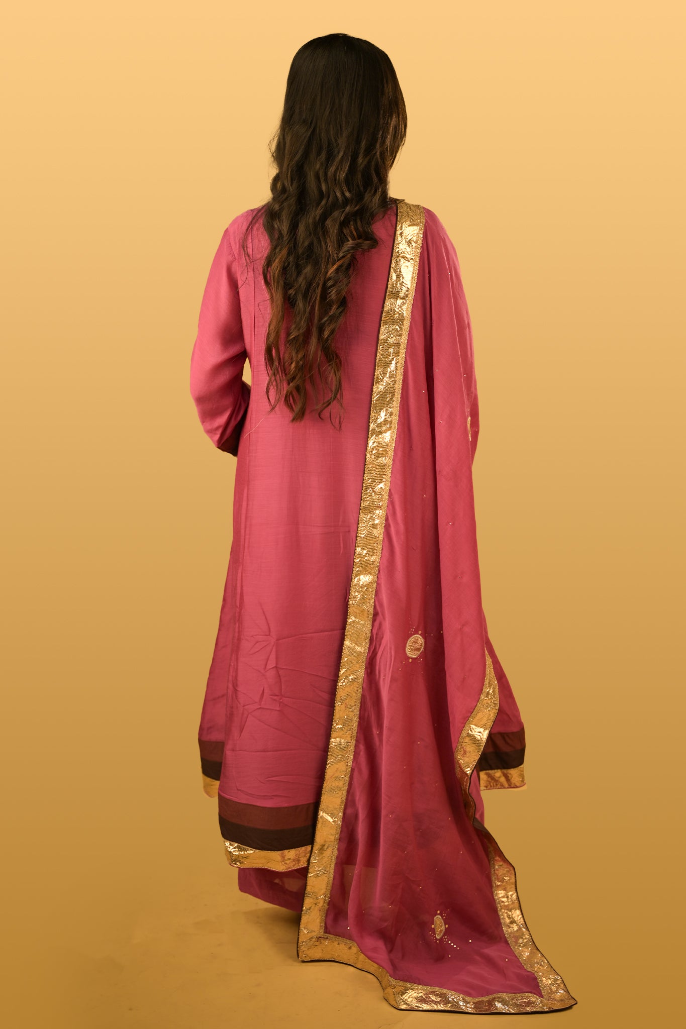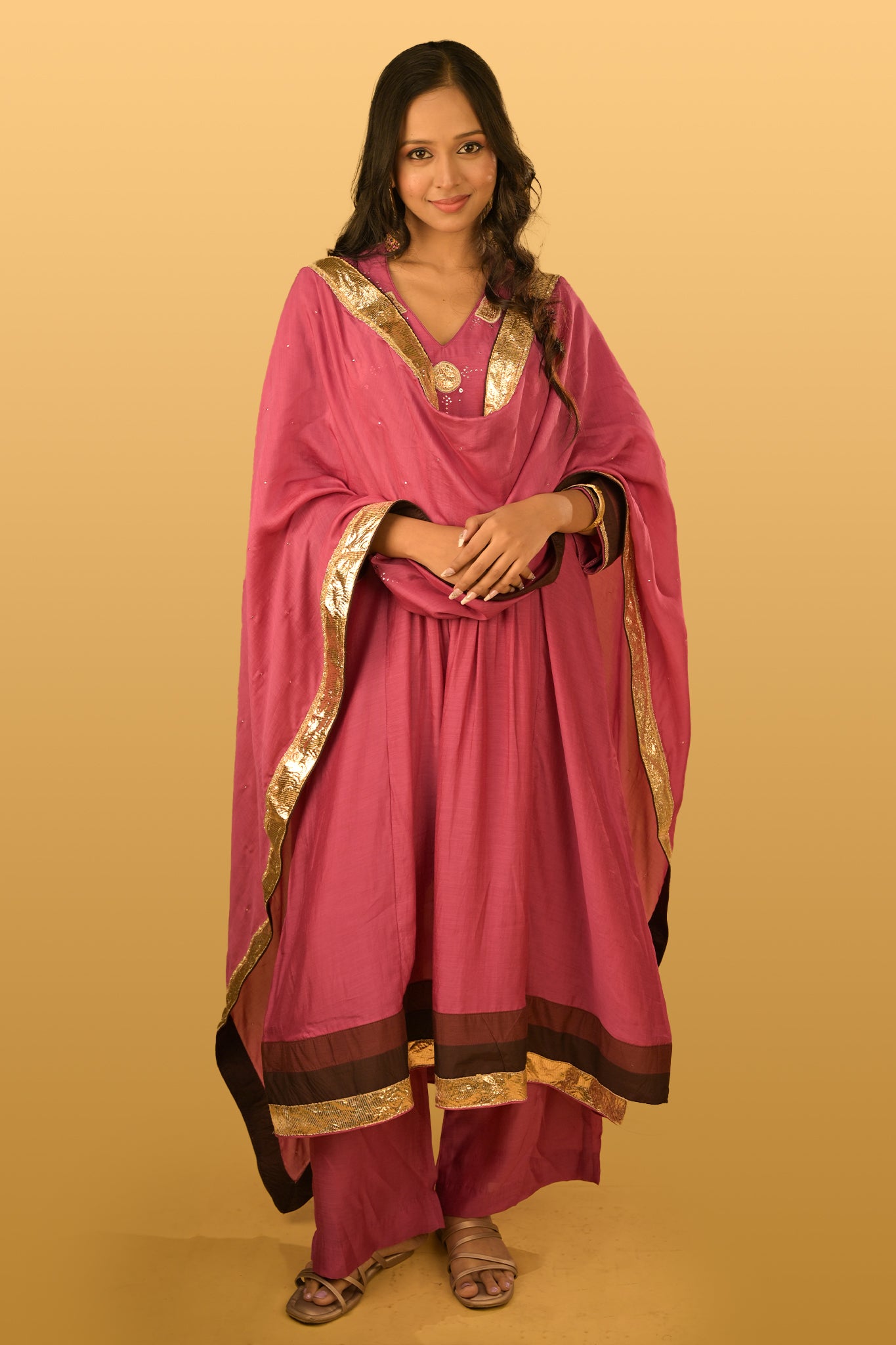Structure: Kurta with subtle gathers and embroidered dupatta