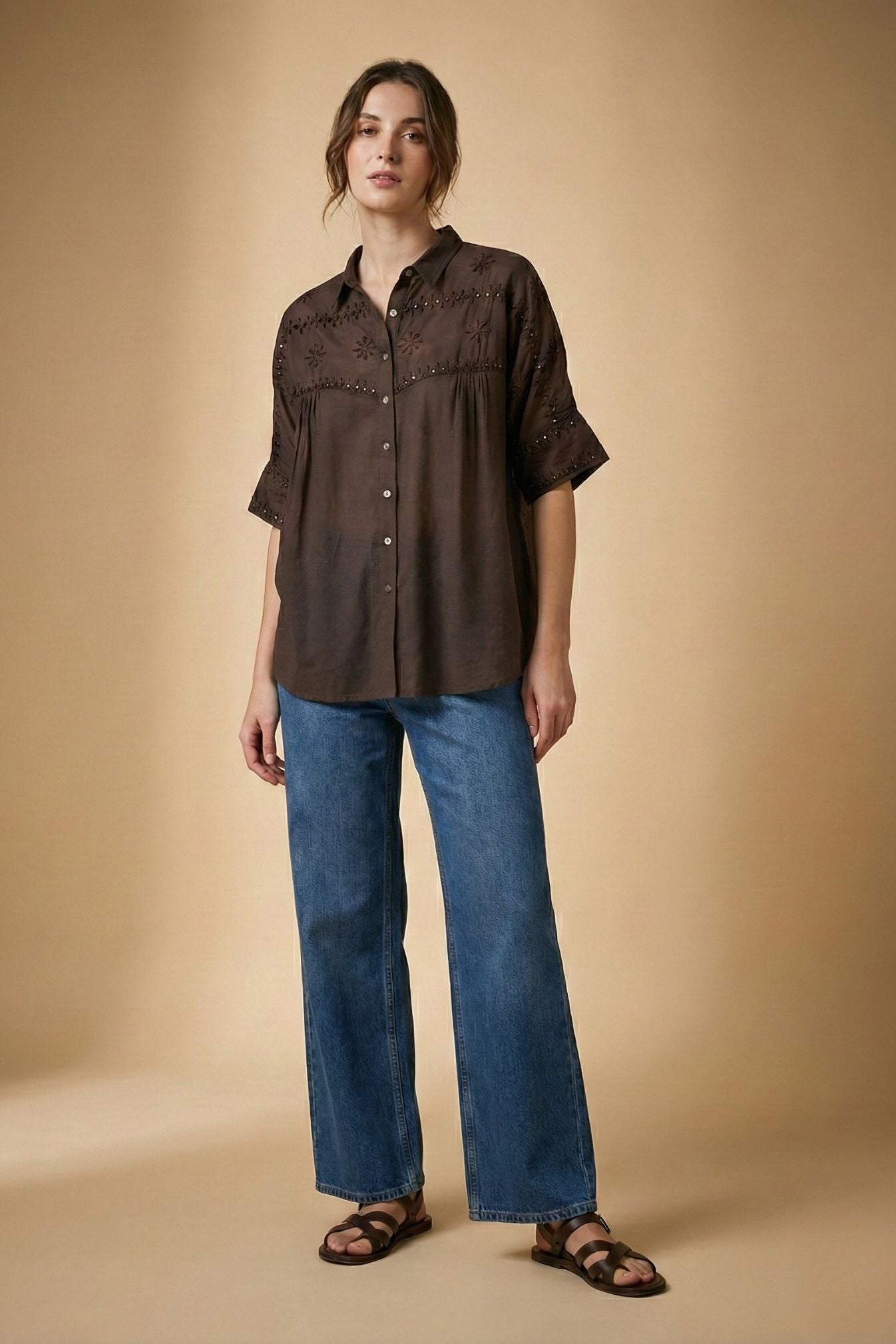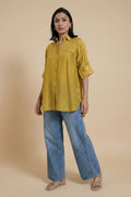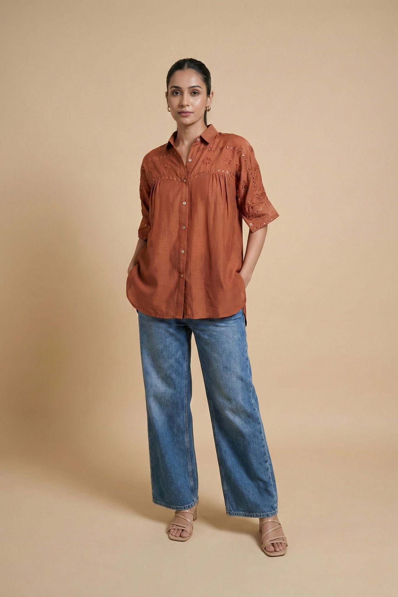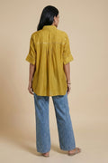 The Samdipth Mirror Shirt designed in a relaxed fit is crafted in soft modal silk with delicate mirror work.