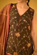 The Surbhi Co-ord Set is a 3-piece Sharara Set crafted in Malai Chanderi. The short kurta is adorned with floral embroidery. Both the sleeveless kurta and the sharara are finished with a Tui and Mashroo border on the hem. The dupatta complements the set with matching Tui and Mashroo accents.